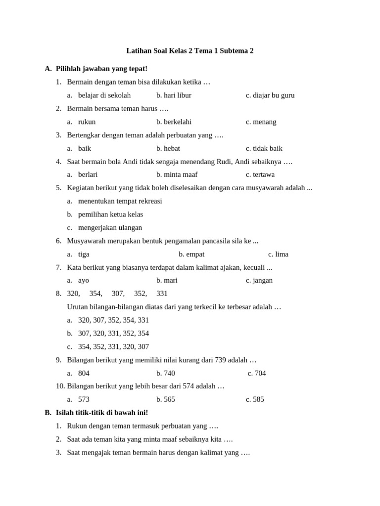 Untuk memastikan pemahaman yang mendalam dan kesiapan anak dalam menghadapi evaluasi, latihan soal secara berkala menjadi kunci. Artikel ini hadir untuk membantu Anda, baik sebagai orang tua yang ingin mendampingi belajar di rumah, maupun guru yang mencari referensi soal, dalam menyediakan latihan yang relevan dan mendidik. Kami akan menyajikan kumpulan latihan soal untuk Kelas 2 Tema 1 Subtema 1 yang mencakup berbagai mata pelajaran, dilengkapi dengan kunci jawaban dan pembahasan singkat untuk memudahkan proses belajar. Mari kita mulai perjalanan belajar yang menyenangkan ini!